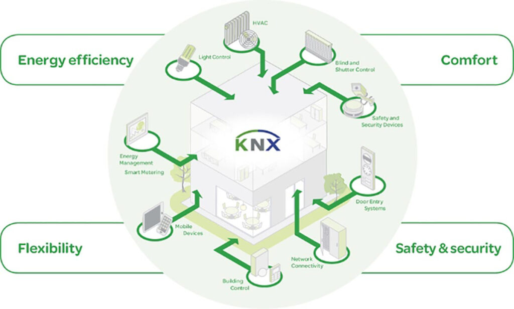 Vanuit KNX kunnen tal van functies aangestuurd en onderling gekoppeld worden: