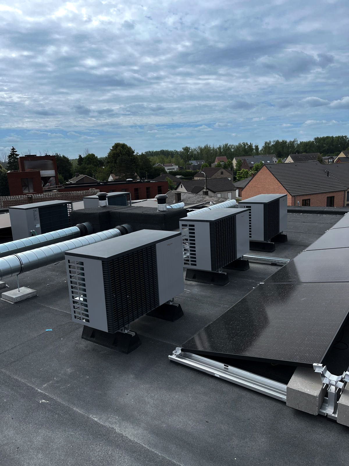 De collega’s van Heatco verzorgden het volledige sanitaire luik, voor zowel de private als de gemeenschappelijke ruimtes. Bumaco Energies installeerde de zonnepanelen voor alle appartementen en dragen zo bij aan een energiezuinig en toekomstgericht woonconcept. Daarnaast nam Bumaco zelf de warmtepompinstallaties en ventilatiesystemen voor alle appartementen voor hun rekening.